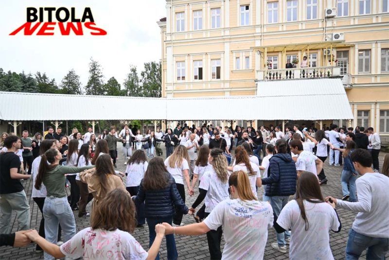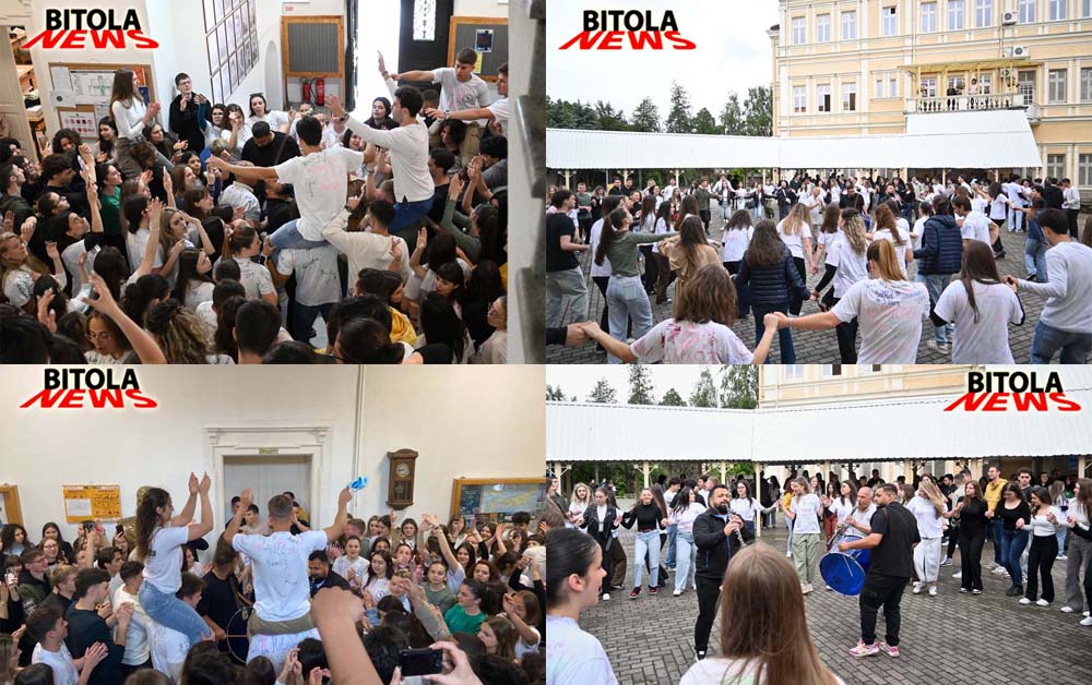 Но денот беше посебно емотивен и со музика традиционално како и секоја година матурантите играа и пееја во дворот и холовите на Гимназијата “Јосип Броз Тито“ од Битола. Се приклучија и дел од професорите кои како и во овие 4 години беа и сега заедно со нив.