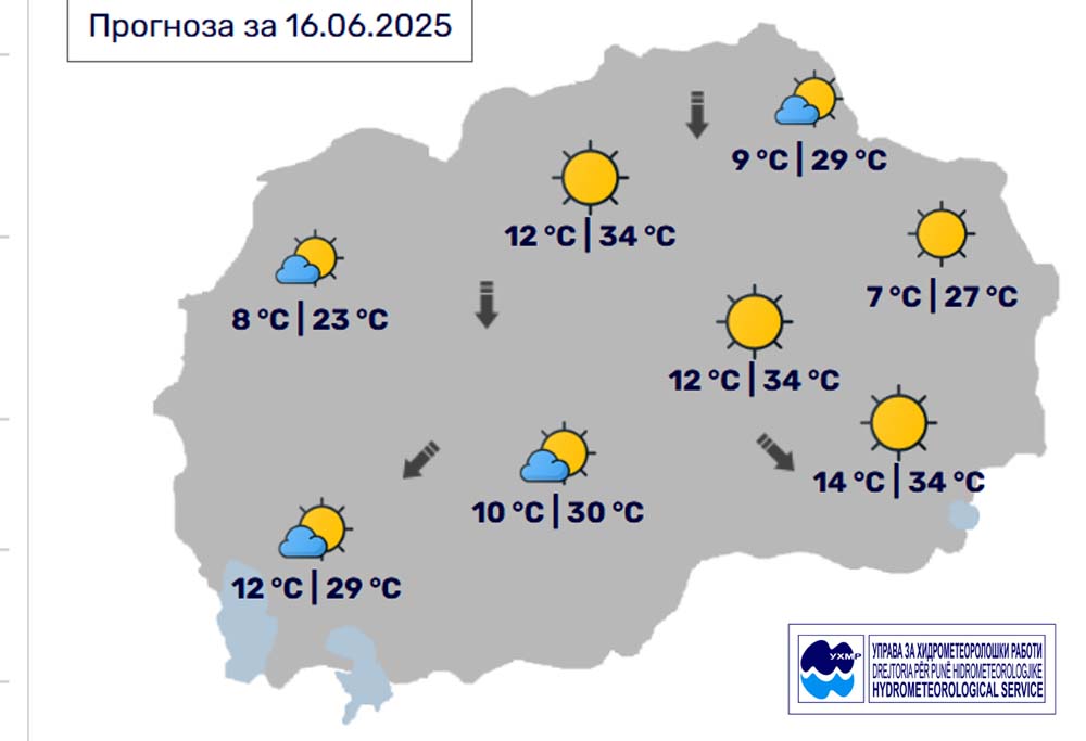 Денес, вторник, 17 јуни, во Битола, според прогнозите на метеоролозите на Управата за хидрометеоролошки работи, времето ќе биде сончево и топло со мала локална облачност. Ќе дува слаб до умерен ветер од северен правец. Температурата во Битола до 30 степени.