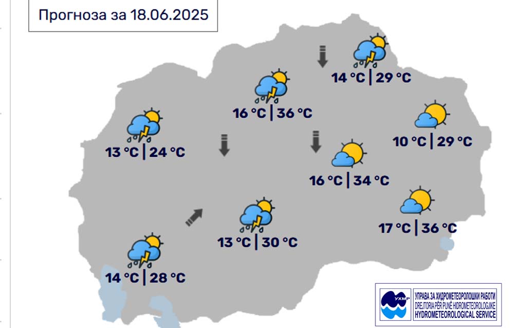 Денес, среда, 18 јуни, во Битола, според прогнозите на метеоролозите на Управата за хидрометеоролошки работи, времето ќе биде сончево и топло со мала до умерена облачност. Попладне ќе има развој на нестабилна облачност со локален пороен дожд, грмежи и засилен ветер. Температурата во Битола до 30 степени.
