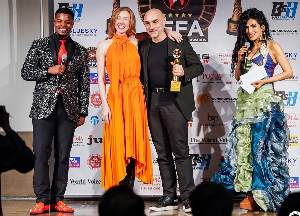 „Возбуден сум, почестен и понизно ја споделувам оваа исклучителна актерска награда за најдобар машки актер за ‘Лена и Владимир’ со вас, од доделувањето на наградите на Indie Film Festival Awards во Њујорк“.