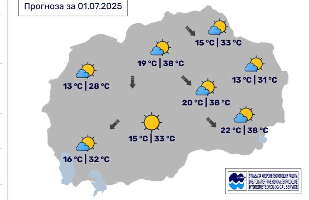 Денес, вторник, 1 јули, во Битола, според прогнозите на метеоролозите на Управата за хидрометеоролошки работи, времето ќе биде сончево. Ќе дува слаб до умерен ветер од северен правец. Максималната температура во Битола ќе достигне до 33 степени.