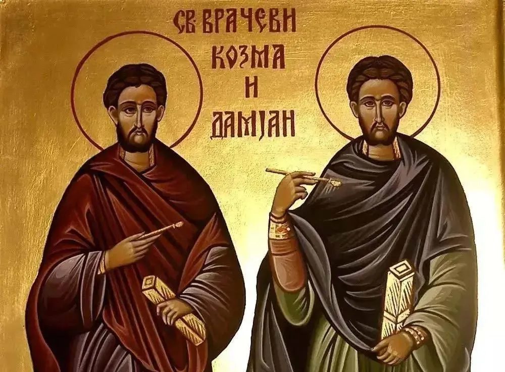 -На иконата светите врачи Кузман и Дамјан секогаш се претставени заедно со крстови во рацете или, со кутивче со лекови и со лажиче со кое на болните бесплатно им давале од лековите. Именден празнуваат: Кузман, Кузе, Дамјан, Даме, Дамјана, Кузмана…