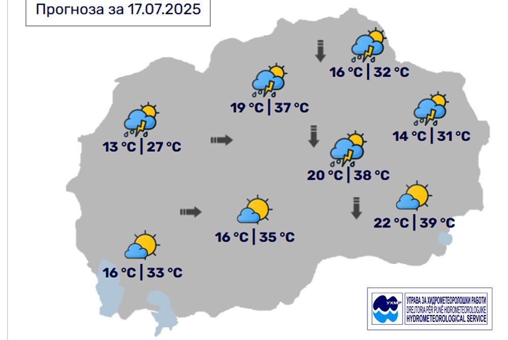 Денес, четврток, 17 јули, во Битола, според прогнозите на метеоролозите на Управата за хидрометеоролошки работи, времето ќе биде сончево и многу топло со мала до умерена локална облачност. Ќе дува умерен западен, северен ветер. Максималната температура во Битола до 35 степени.