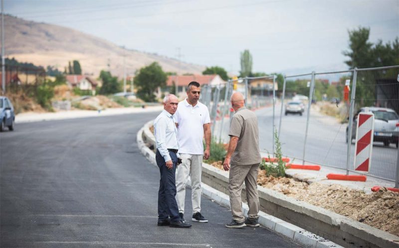 Градоначалникот Тони Коњановски, советникот Бојан Бојкоски и дел од општинската администрација задолжена за реализацијата на проектот, извршија увид во завршната фаза од асфалтирањето на терен.Со завршувањето на комплетниот слој од асфалтирањето на оваа делница, во наредните денови се очекува нов времен режим. Сообраќајот ќе биде пренасочен на новоизградената сообраќајна лента, со цел градежните активности да продолжат од десната страна на коловозот.