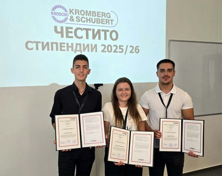 Традиционално по 8-ми пат, компанија “Кромберг и Шуберт“ – Битола ги додели стипендиите на студентите при Универзитетот „Св. Климент Охридски“ од Битола.Катерина Николовска, Андреј Баковски и Никола Најдовски се тројцата овогодинешни студенти, добитници на стипендија за академската година 2025/2026. Тие ги исполнија критериумите и се приклучија на нашата стипендиска програма.