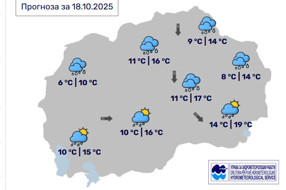 Денес, сабота, 18 октомври, во Битола, според прогнозите на метеоролозите на Управата за хидрометеоролошки работи, времето ќе биде променливо облачно. Ќе дува слаб до умерен ветер претежно од северен правец. Температурата во Битола до 16 степени.