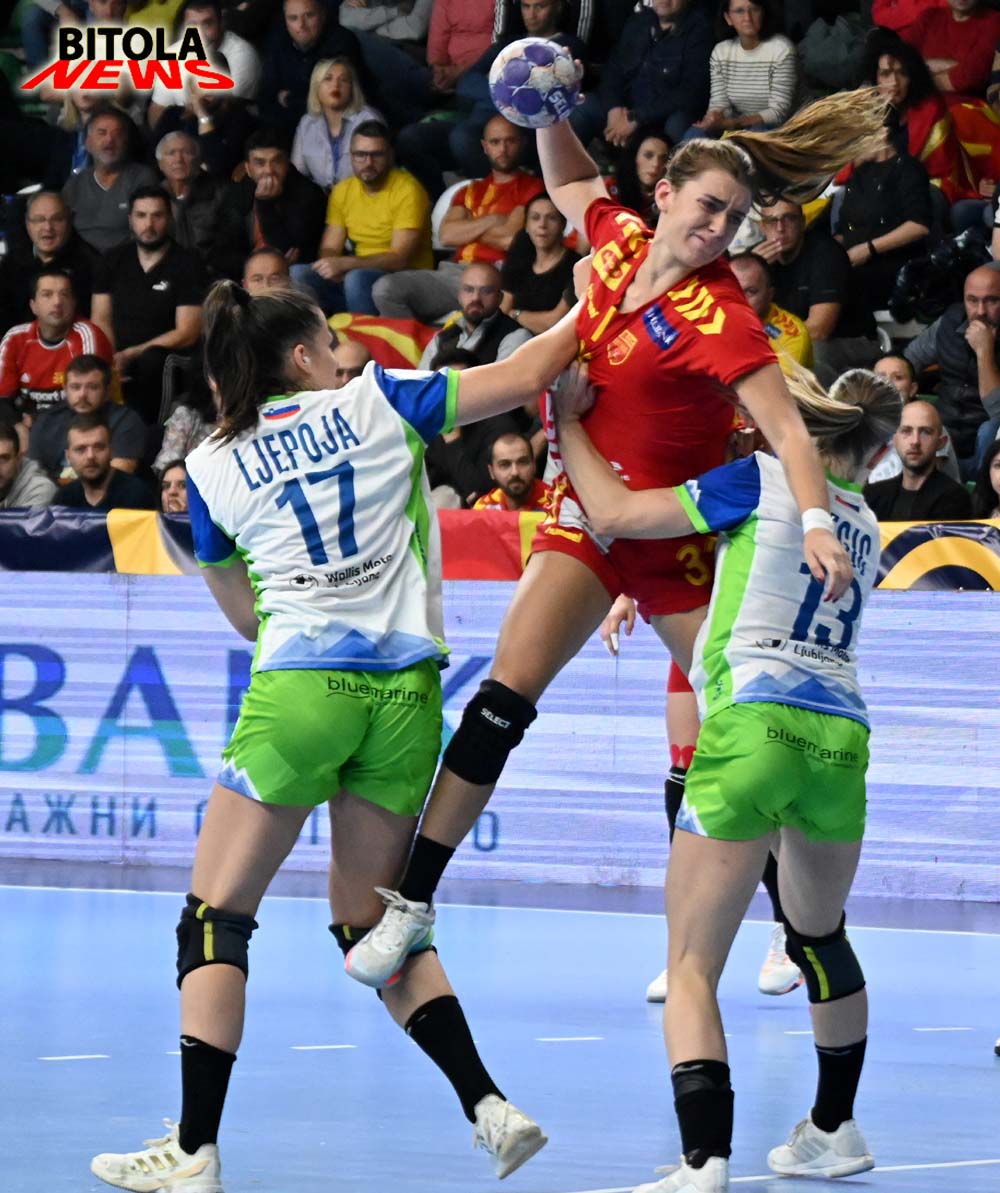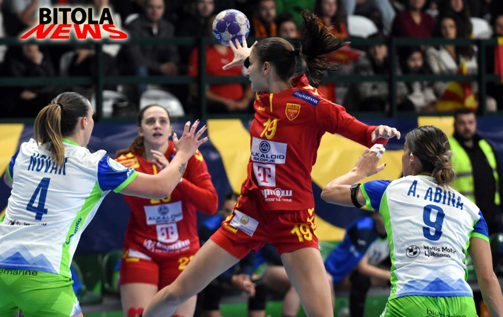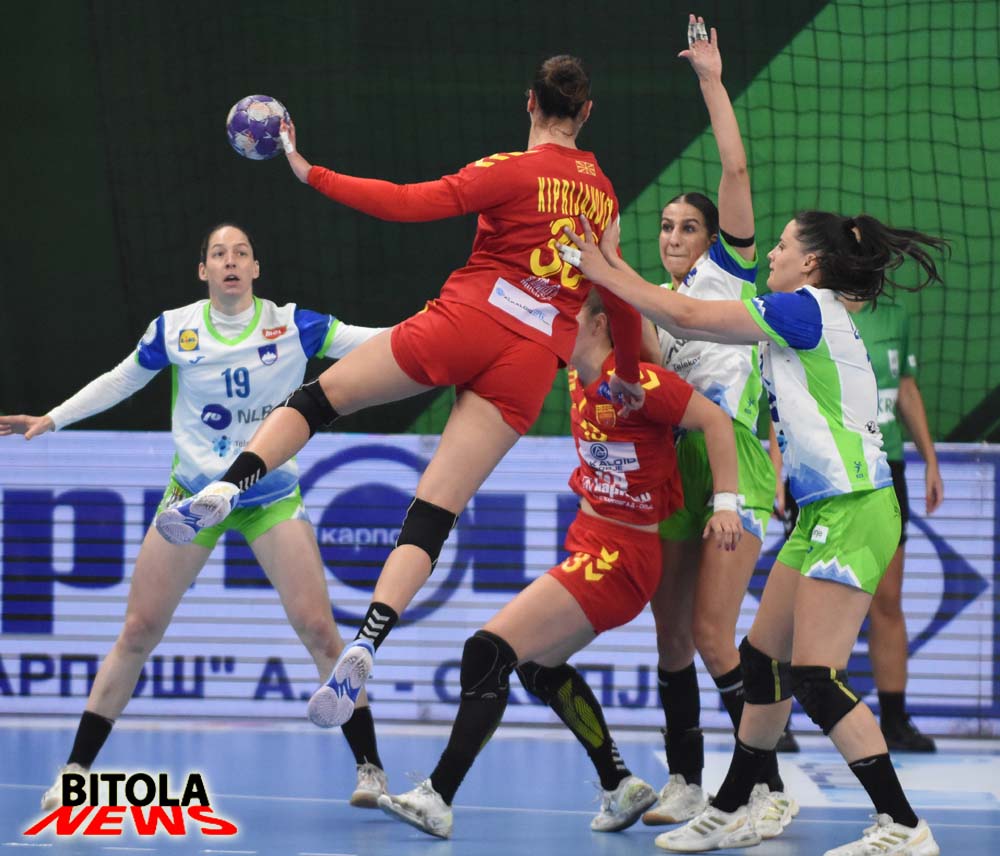 Ракометарките на Македонија претрпеа втор пораз во квалификациите за Европското првенство, откако загубија на првиот домашен меч во Битола од Словенија со убедливи 20:28 (11-12), и 13 минути играа без гол во средината на вториот дел.И покрај одличниот прв дел, и покрај одличната Петковска на голот, сепак Македонија ќе мора да почека до март следната година за прва радост во овој циклус. Стартот на средбата им припадна на гостинките и поведоа со 0:2. Првиот наш гол дојдеод вториот удар од седум метри по нешто повеќе од пет минути игра, а потоа беше 4:3, а водевме до 8:7. Словенија поведе со 9:11, а на одмор се замина со минимални 11:12.Второто полувреме започна со гол на Македонија за 12:12, но на тоа следуваа два гола за нови +2 за гостинките. Македонија имаше повторно реми 14:14, а имавме и 15:15. До средината на второто полувреме Словенија имаше +3 (17:20), а пото и 18:22. Гостинките имаа серија од 0:8, а беше прекината со гол по пауза од речиси 13 минути без постигнат погодок на нашата селекција. Словенија одугра до крајот рутински за победа во Битола.Ивана Арсениевска најефикасна со 4 гола кај Македонија, а Ангела Јанкуловска погоди 3 пати.