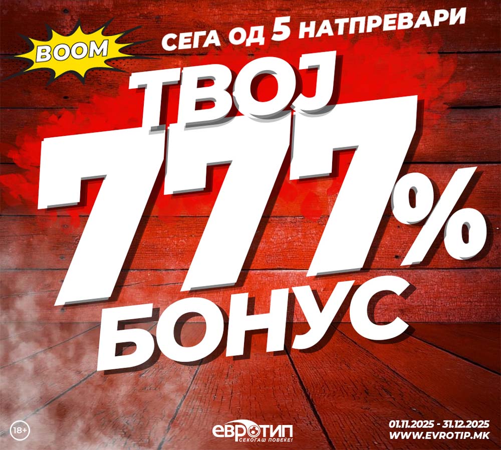 Од 1 ноември, Евротип го надградува најпопуларниот бонус на пазарот – Твој 777% Бонус станува уште подостапен за сите играчи!