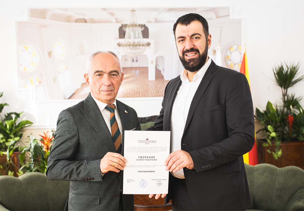 Денес, на Тони Коњановски му беше врачено Уверението за избран градоначалник, кој ќе раководи со општина Битола во наредните 4 години од страна на претседателот на Општинската изборна комисија Игор Талевски.