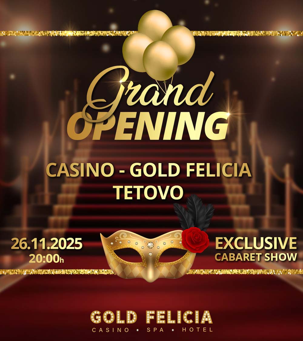 По четири години успешно работење и изградена репутација како најгламурозната дестинација во Битола, брендот прави чекор кој долго време го очекуваше регионот. Само 5 километри од Тетово, на патот кон наплатната рампа Желино, се отвора најновиот дом на врвната игра – Casino Gold Felicia Tetovo.
