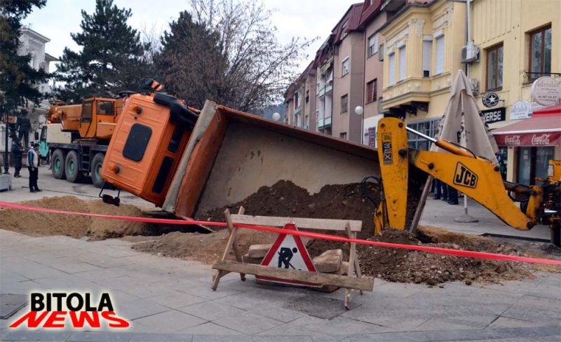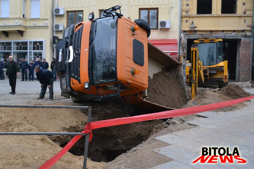Камионот пропадна во ископаниот канал, за среќа немаше никој повредени, а камионот со посебна градежена мажина беше изваден, нез некои посериозни оштетувања.