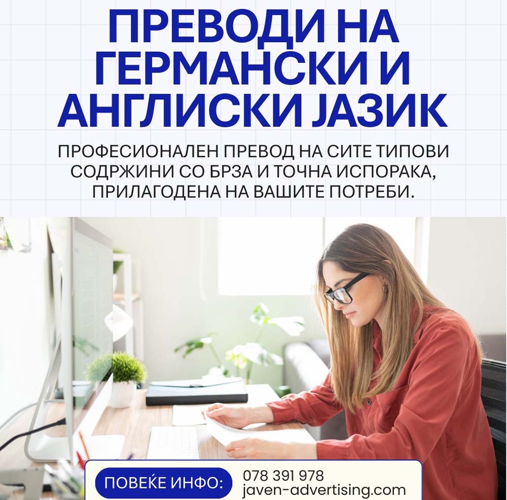 Нудиме услуги за преведување на германски и англиски јазик, изработени со високо ниво на прецизност и усогласеност со официјални стандарди.