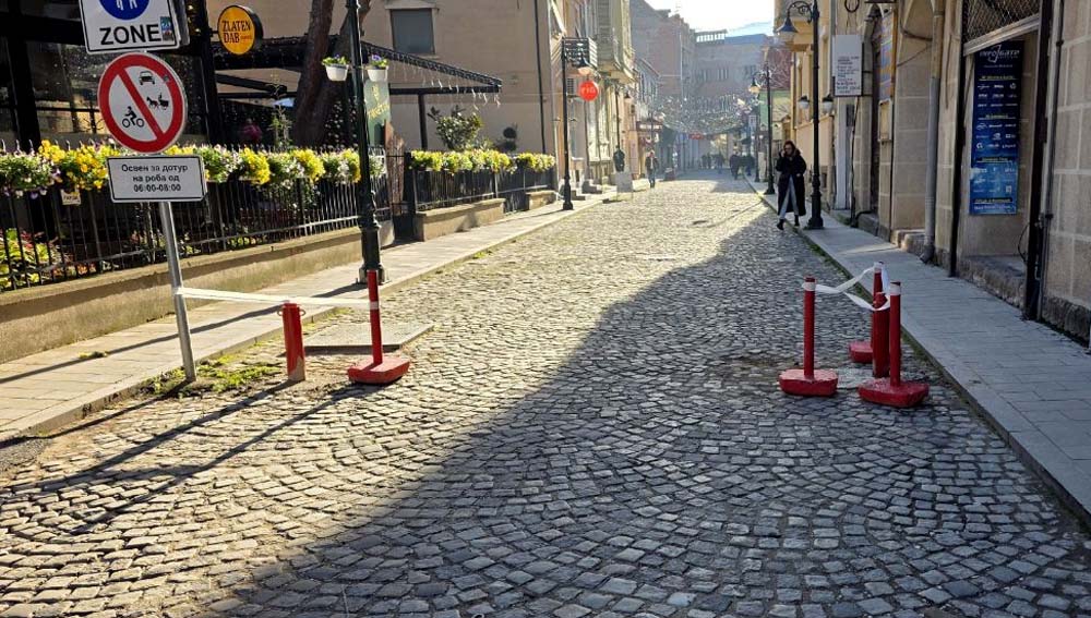 Оваа улица со одлука на Советот на општина Битола е прогласена за пешачка зона, но поради нашите несовесни сограѓани кои во изминатиов период не ја почитуваа сообраќајната сигнализација принудени сме повторно да ја спроведиме оваа мерка.
