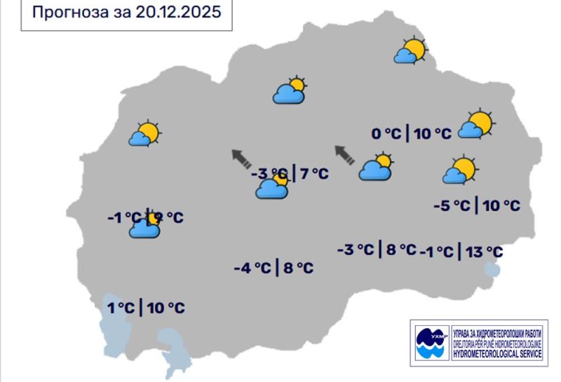 - Во Битола променливо облачно со сончеви периоди, температурата до 8 степени