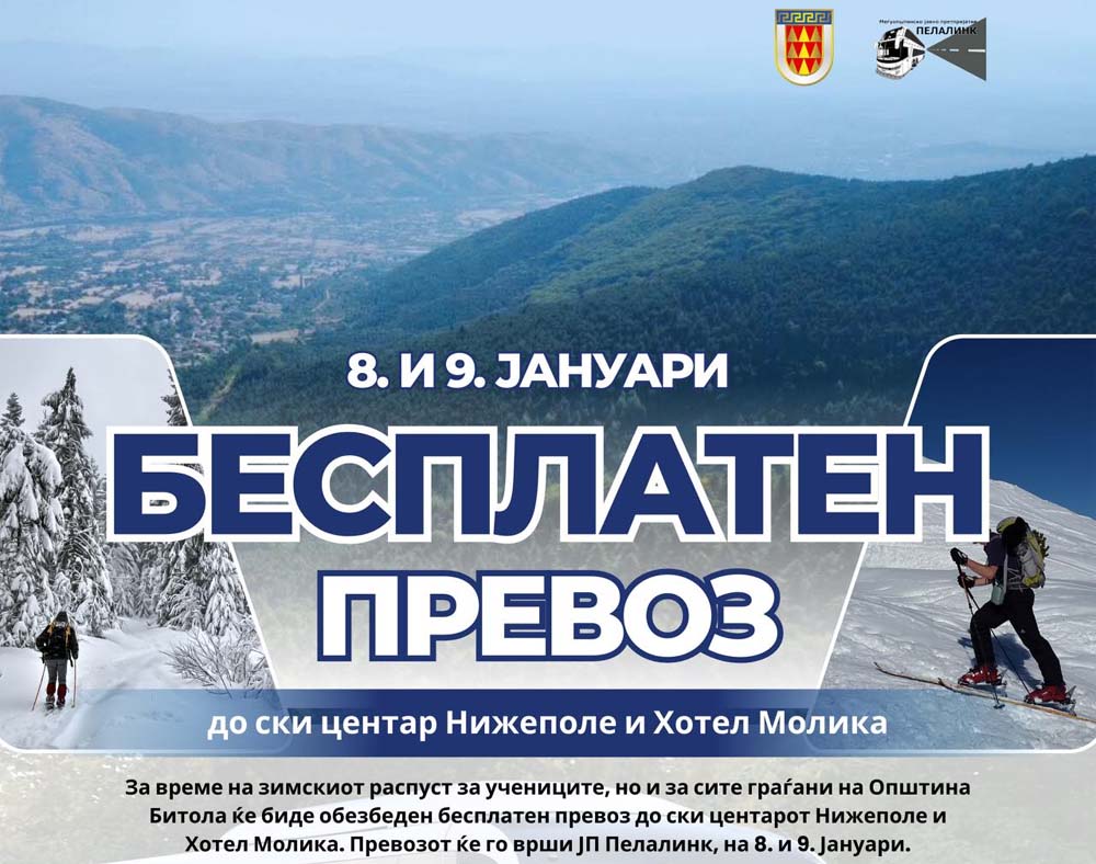 Општина Битола и јавното претпријатие „Пелалинк“ и оваa зима за време на зимскиот распуст за учениците, но и за сите граѓани ќе обезбеди бесплатен превоз до ски центрите на Баба Планина.