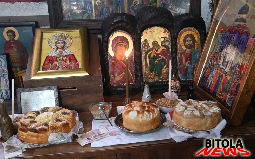 Верниците кои за куќна слава го имаат Божик по завршувањето на Службата “кренаа лепче“ за здравје.