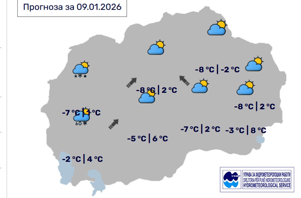 Денес, петок, 9 јануари, во Битола според прогнозите на метеоролозите на Управата за хидрометеоролошки работи, времето ќе биде променливо облачно со сончеви периоди. Ќе дува слаб до умерен ветер од јужен правец. Температурата во Битола до 6 степени.