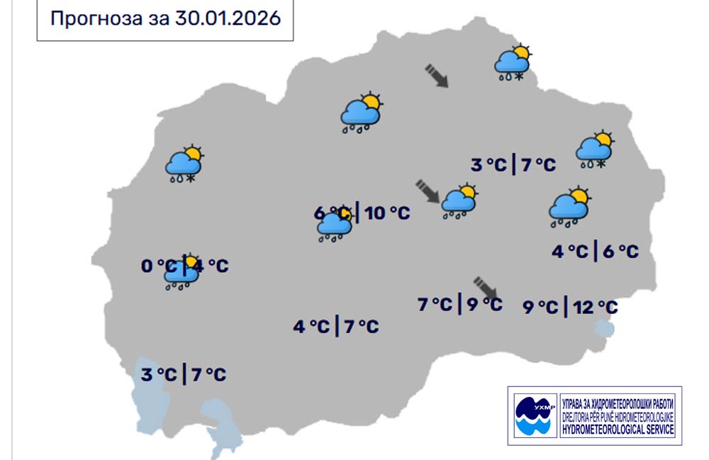 Денес, петок, 30 јануари, во Битола, според прогнозите на метеоролозите на Управата за хидрометеоролошки работи, времето ќе биде променливо облачно со повремени локални врнежи од дожд. Температурата во Битола до 7 степени.