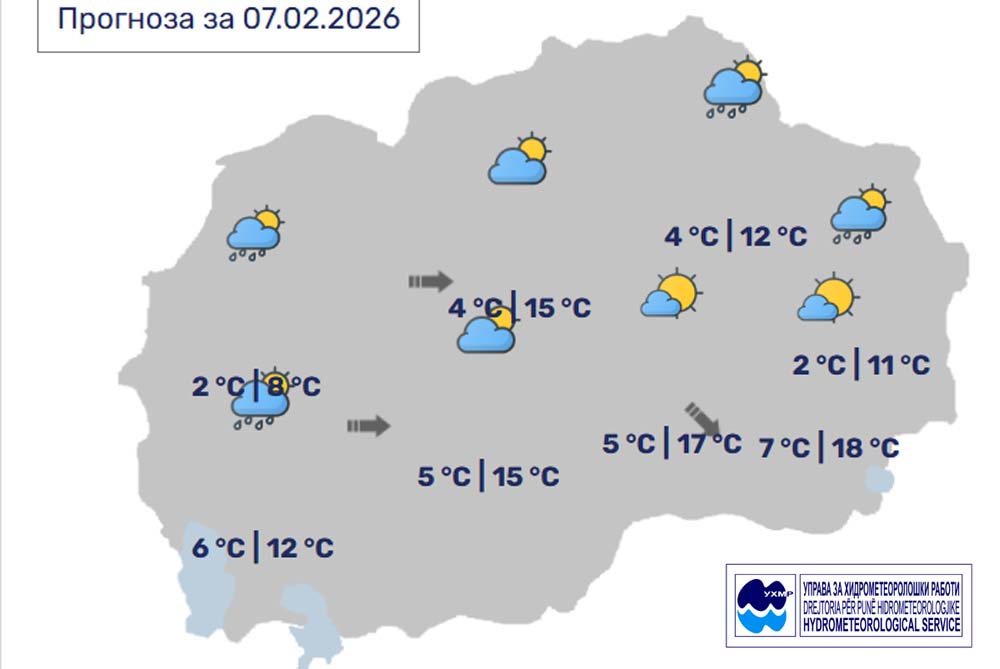 Утре, недела, 8 февтуари, во Битола времето ќе биде променливо облачно, претпладне ќе има повремени локални врнежи од дожд. Ќе дува слаб до умерен ветер од северозападен правец. Температурата во Битола до 9 степени.