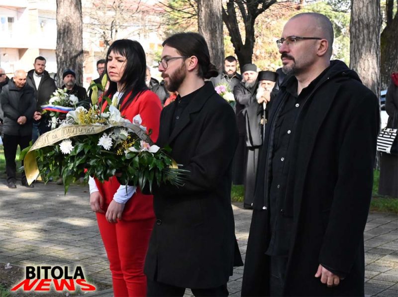 На Рускиот крст кои се поклонија и дугите присутни на споменот на Александар Аркадиевич Ростковски, руски конзул во Битола, кој во 1903 година беше убиен токму на ова место.