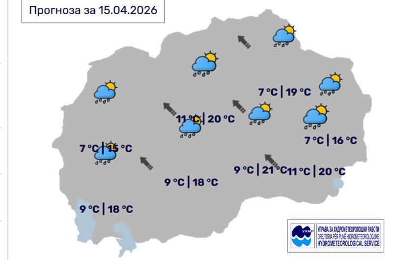 Денес, петок, 20 февруари, во Битола, според прогнозите на метеоролозите на Управата за хидрометеоролошки работи, времето ќе биде променливо облачно со повремени врнежи од дожд. Ќе дува умерен, повремено засилен ветер од јужен правец. Температурата во Битола до 9 степени.