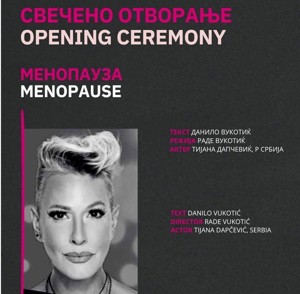 Со популарната претстава „Менопауза“ со актерката Тијана Дапчевиќ свечено ќе биде отворено 27. издание на Интернационалниот фестивал на монодрама во НУ Центар за култура – Битола додека фестивалот ќе биде заокружен со изведбата на претставата „Гидионовиот јазол“ на сцената на Народен театар Битола.