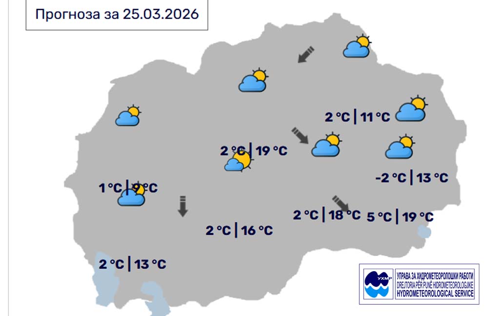 Во Битола сончево и променливо облачно, температурата до 16 степени Во Битола сончево и променливо облачно, температурата до 16 степени март 25, 2026