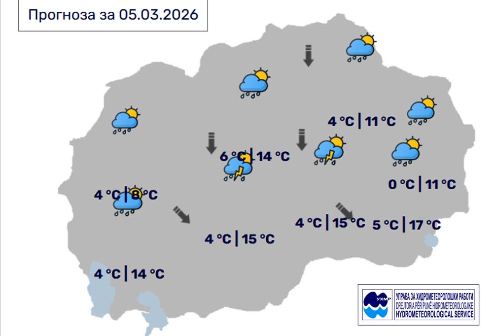 Во Битола променливо облачно со повремен дожд, температурата до 15 степени Во Битола променливо облачно со повремен дожд, температурата до 15 степени март 5, 2026